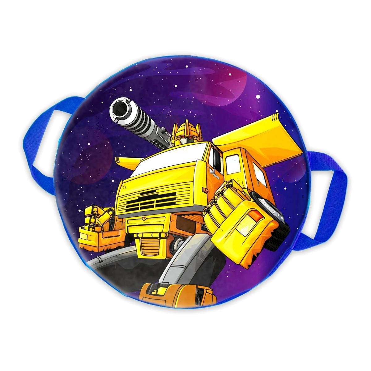 Детская ледянка с изображением «Автобота» из мультфильма «Трансформеры» порадует любого ребенка и поможет выделиться среди сверстников. Такая яркая и удобная ледянка подарит ребенку впечатления, которые останутся в его памяти на долгие годы. Модель выполнена из тентовой ткани, которая отлично скользит и не ломается на морозе. Внутри находится мягкий поролон, который обеспечит амортизацию во время катания и убережет от травм. Санки оснащены двумя парами ручек для удобного управления и безопасности. Универсальный диаметр ледянки позволяет ребенку полностью размещаться на них и вытянуть ноги вперед.Особенности и преимущества: