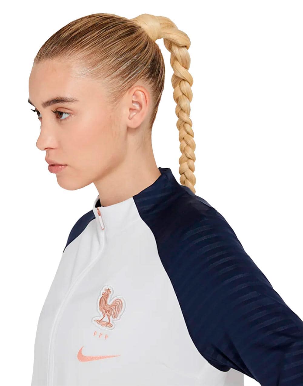 Женская куртка настоящей болельщицы с эмблемой Федерации Футбола Франции.Такая футбольная куртка в классических цветах клуба станет отличным приобретением для любительницы футбола. Комфортный материал с начесом на изнаночной стороне приятен к телу и согреет в непогоду. Так же в куртке можно размяться перед предстоящей игрой. Материал отлично тянется и не теряет форму после стирки. Эластичный силиконовый принт растягивается вместе с тканью, и разбавляет классический, спортивный образ. Молния на всю длину в цвет куртки облегчает надевание. Плечевой шов вынесен ниже линии плеча для большего комфорта и лучшей посадки. Плоские швы не натирают кожу. По бокам расположены карманы на молниях, поэтому Вы можете взять необходимые вещи с собой. Задняя кромка слегка удлиненна, благодаря чему куртка не будет открывать поясничный отдел при активных движениях. На рукавах есть отверстия для больших пальцев. На груди расположены золотистые эмблемы бренда Nike и FFF.